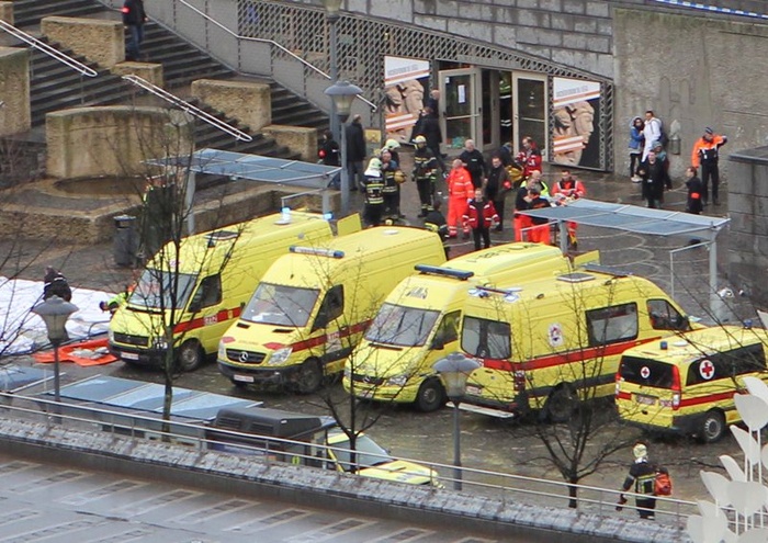 Policja i straż pożarna zablokowały dostęp do miejsca zamachu. Zamknięto wszystkie sklepy w okolicy; w niektórych sklepach oraz w muzeum wcześniej chronili się ludzie. Nad miastem krążyły policyjne śmigłowce, a na dziedzińcu sądowego gmachu, położonego przy placu, zorganizowano punkt medyczny.
