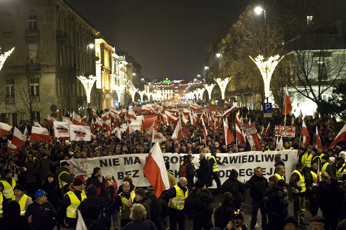 Uczestnicy Marszu Niepodległości i Solidarności", którego inicjatorem był PiS, przeszedł stołecznymi Alejami Ujazdowskimi w kierunku Belwederu. W marszu - według organizatorów - wzięło udział - od 5 do 10 tys. osób. Obecny był też lider PiS Jarosław Kaczyński.