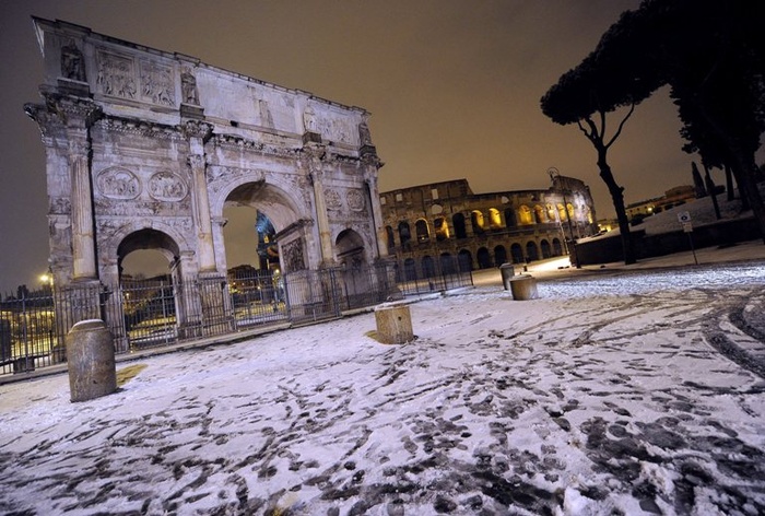 Słońce w sobotni poranek sprawiło, że większość śniegu stopniała, ale po kilku godzinach znów zaczął padać budząc zachwyt dzieci i turystów, fotografujących z zapałem ośnieżone Koloseum i Forum Romanum oraz Plac świętego Piotra.