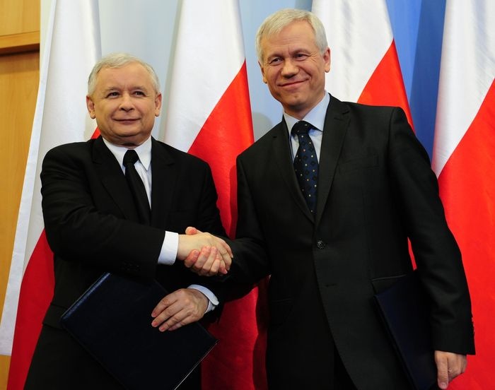 Prezes PiS Jarosław Kaczyński i prezes Prawicy Rzeczypospolitej Marek Jurek podpisali w sobotę umowę o współpracy obu partii. Zakłada ona m.in. wspólne listy wyborcze, choć odrębne kluby w parlamencie.