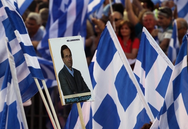 Według prognoz niedzielne wybory w Grecji nieznacznie wygrała konserwatywna Nowa Demokracja (29,5 proc.), która prawdopodobnie utworzy rząd z socjalistyczną partią PASOK (12,3 proc.). Oba ugrupowania chcą, by Grecja wywiązała się ze zobowiązań wobec kredytodawców w zamian za pakiet pomocy finansowej. Przeciwna reformom koalicja radykalnej lewicy SYRIZA zdobyła 27,1 proc.
