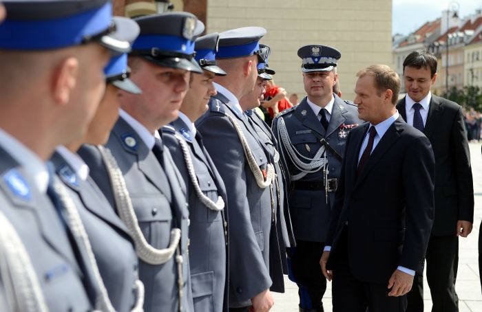 Możecie liczyć na wparcie państwa w każdej sytuacji - zapewniał w sobotę policjantów premier Donald Tusk w czasie obchodów Święta Policji. Podkreślał też historyczne zasługi w czasie Euro 2012. A szef KGP dodawał: policyjny mundur to zaszczyt i obowiązek.