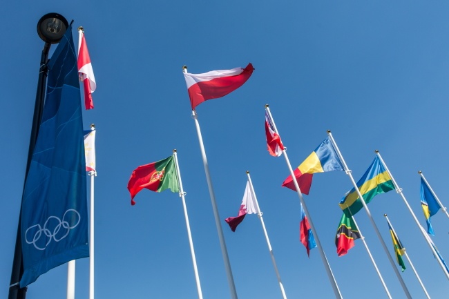 Oprócz Polaków, w trwającej około 25 minut ceremonii w tzw. strefie międzynarodowej (ogólnie dostępnej dla dziennikarzy), okraszonej widowiskiem artystycznym, uczestniczyli sportowcy, trenerzy i działacze z Francji, Danii, Kuwejtu oraz Wybrzeża Kości Słoniowej. Flagi tych krajów zatrzepotały w czwartkowe, upalne południe (temperatura dochodzi do 30 stopni Celsjusza) obok biało-czerwonej.
