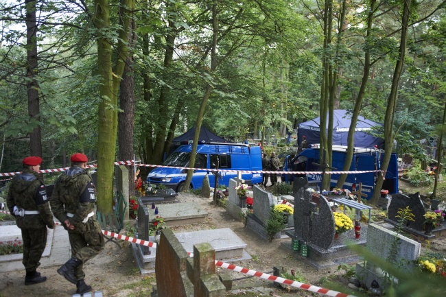 Cmentarz był we wtorek rano zamknięty dla osób postronnych, a wejść pilnowała żandarmeria wojskowa. Teren wokół cmentarza kontrolowała policja. W ekshumacji uczestniczyli m.in. prokuratorzy i inspektorzy sanitarni.