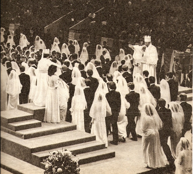 Zbiorowe śluby są zawierane od początku lat 60. XX wieku. Z początku w ceremoniach uczestniczyło kilkanaście osób, z czasem stały się bardziej liczne, m.in. dzięki rozgłosowi, który sekta zyskała za pośrednictwem światowych mediów.