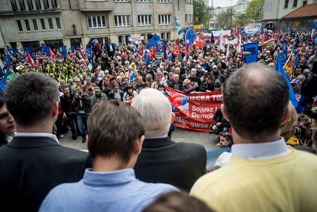 – Mamy Święto Pracy bez pracy, a Polska nie jest zieloną, lecz szarą wyspą. Wypełniają ją obywatele zrobieni na szaro przez władze Rzeczypospolitej. Polska majowa to dzieci bez przedszkola, rodzice bez pracy, a dziadkowie bez godnej emerytury – mówił przed pochodem przewodniczący SLD Leszek Miller.