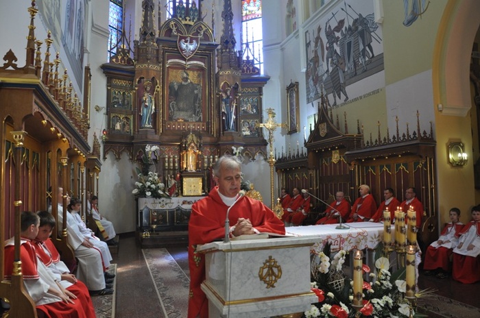 Sumie odpustowej w tym dniu przewodniczył ks. prał. Jan Piotrowski, prepozyt Kapituły Kolegiackiej w Nowym Sączu oraz kustosz bazyliki i sanktuarium Przemienienia Pańskiego. – Święci nie umierają. Żyją w pamięci Boga i naszej, w modlitwie, liturgii, imionach, które nosi wielu z nas – powiedział w homilii kaznodzieja. Ks. Piotrowski przypomniał, że św. Stanisław ma swoich naśladowców w diecezji i w Polsce. – Jest nim m.in. zamordowany 15 lat temu tarnowski ksiądz Jan Czuba, który zginął w Kongo. Przed swoją śmiercią napisał w ostatnim liście prorocze słowa: „Zostaję na miejscu do końca”. Nie brakuje i dziś dobrych pasterzy na wzór św. Stanisława – podkreślił w kazaniu.
