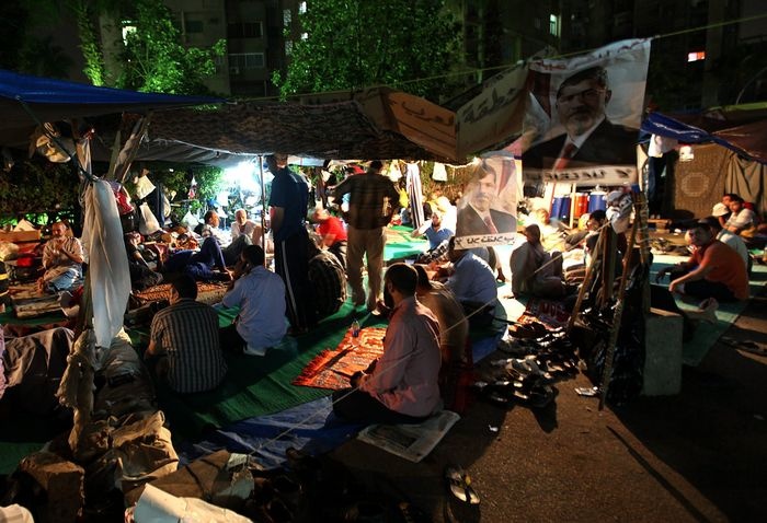 Od obalenia Mursiego jego zwolennicy, rekrutujący się głównie z Bractwa Muzułmańskiego oraz innych organizacji islamistycznych, protestują niemal codziennie na ulicach egipskiej stolicy. Domagają się przywrócenia Mursiego do władzy. Łącznie w ciągu miesiąca zamieszek w całym kraju śmierć poniosło ponad 300 osób.