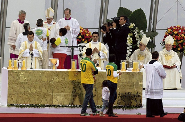 Małżeństwo, które w Rio de Janeiro podało papieżowi dary eucharystyczne, niosło dwoje dzieci. Papież pocałował główkę ich córki cierpiącej na anencefalię. W Brazylii takie dzieci można zabić przed urodzeniem.