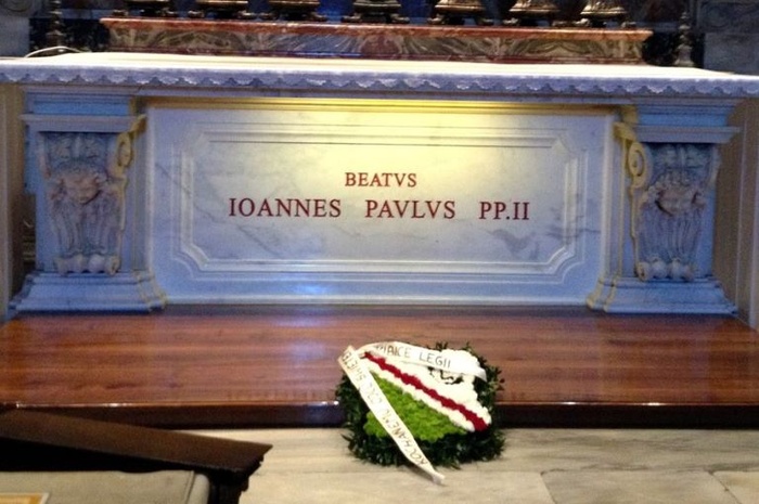 Wspierać ich będą wierni fani, którzy swoją wizytę w Rzymie rozpoczęli od nawiedzenia grobu bł. Jan Pawła II. Złożyli przy nim wieniec w kształcie herbu i w barwach warszawskiej Legii.