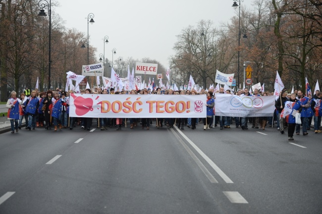 "Oczekujemy, że rząd RP wycofa się z rozwiązań, których konsekwencją będzie obniżenie jakości kształcenia oraz zrujnowanie statusu zawodowego nauczycieli i degradacja materialna pracowników oświaty" - napisano w petycji, która została złożona przez uczestników manifestacji w kancelarii premiera.
