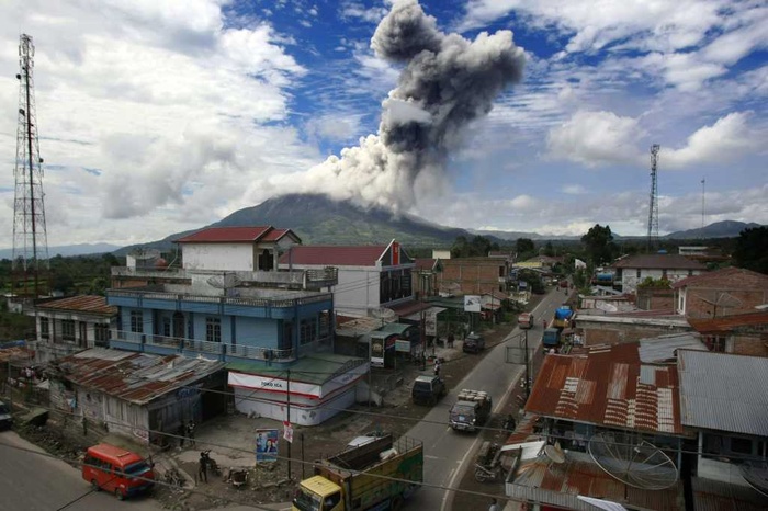 Sinabung - najwyższy szczyt prowincji Sumatra północna (prawie 2,5 tys. m n.p.m.) przebudził się w sierpniu 2010 roku, po prawie 400 latach. Z krateru zaczęła wypływać lawa. Wkrótce potem wulkan nieco się uspokoił, ale od września br. jest znów aktywny. Na początku listopada wyrzucił chmurę wulkanicznego pyłu na wysokość 7 tys. metrów.