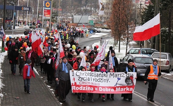 Z rynku w Cieszynie w pochód ulicami miasta ruszyli uczestnicy I chrześcijańskiego marszu w obronie życia i rodziny.