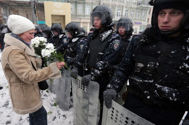 Najdalsze barykady na dojściach do Majdaniu Niepodległości w Kijowie, gdzie już trzeci tydzień trwają protesty, zostały już zlikwidowane. Rozebrali je młodzi ludzie, ochraniani przez zwarte kordony wyekwipowanej w kaski, pałki i tarcze milicji. „Milicja zaczęła wypierać protestujących z jezdni na ulicach Instytuckiej i Hruszewskiego, gdzie zablokowany jest ruch samochodowy. Do incydentów do chwili obecnej nie doszło” – przekazało w poniedziałek wieczorem centrum prasowe MSW.