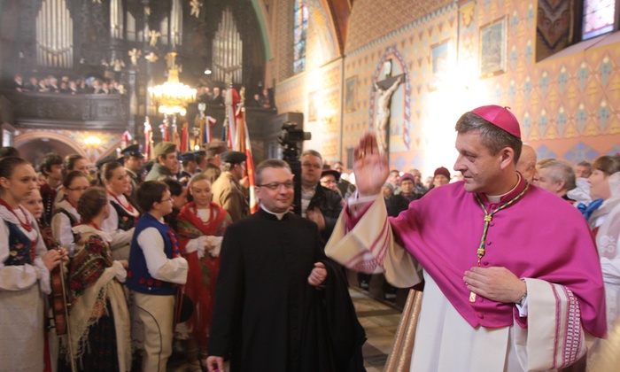 Ks. biskup miał wygłosić w Żywcu swoje pierwsze, oficjalne słowo. Jednak ze względu na niedyspozycję zdrowotną, tekst przemówienia przeczytał wiernym biskup pomocniczy Piotr Greger.