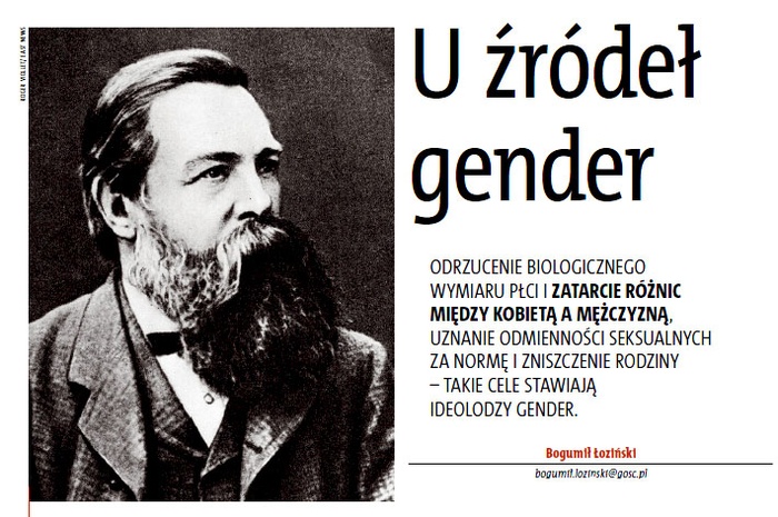 W najnowszym numerze Gościa Niedzielnego znajduje się artykuł „U źródeł gender”, w którym przytoczone są fragmenty publikacji twórców tej ideologii. Jednoznacznie wskazują one, że punktem wyjścia dla ideologicznego genderyzmu był marksizm.
