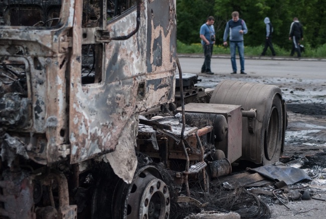 Ciężarówka zniszczona podczas walk w Słowiańsku ROMAN PILIPEY /PAP/EPA