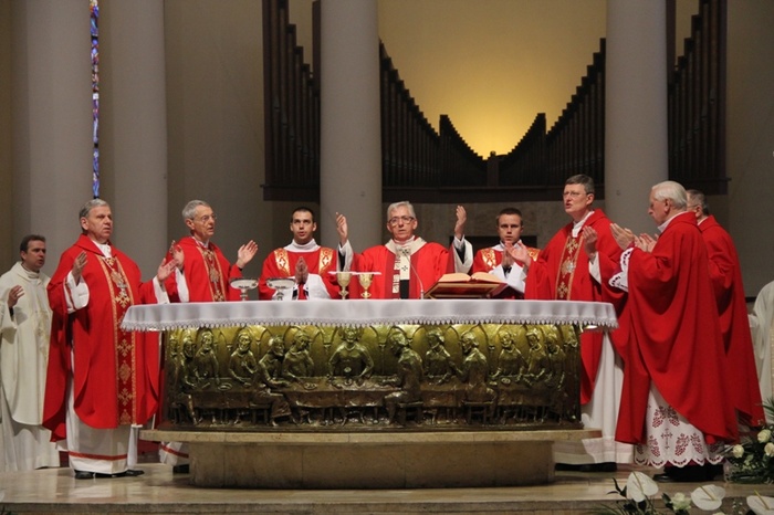 Podczas Eucharystii biskupi z Polski: abp Wiktor Skworc, metropolita katowicki, bp Jan Kopiec, ordynariusz gliwicki, oraz abp senior Damian Zimoń, a także hierarchowie niemieccy: kard. Rainer Maria Woelki, arcybiskup Berlina, abp Ludwig Schick, arcybiskup Bambergu, oraz bp Wolfgang Ipolt, ordynariusz diecezji Görlitz, wspólnie z kapłanami naszej archidiecezji modlili się w intencji pokoju, zwłaszcza na Ukrainie.