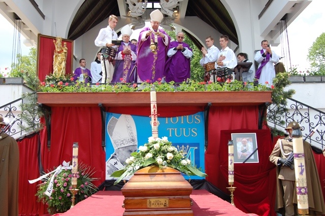 Jeźdźcy z banderii konnej trzymający w rękach maryjne flagi, salwy honorowe żołnierzy z 21 Brygady Strzelców Podhalańskich z Rzeszowa. A na zakończenie symboliczne krople deszczu. Ludźmierz i cała Ziemia Podhalańska pożegnała 24 maja ks. prałata Tadeusza Juchasa. Uroczystości pogrzebowe prowadził metropolita krakowski kard. Stanisław Dziwisz.