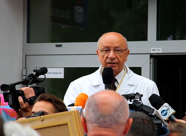 - Jesteśmy z Tobą i nie pozwolimy na szarganie Twojego dobrego imienia - powiedziała Kinga Malecka-Prybyło, pacjentka prof. Chazana, przedstawicielka reszty zebranych pacjentek. Dziękowała profesorowi za dobroć, troskę i fachową opiekę. - Znamy zupełnie inny obraz Pana Profesora niż ten, który w ostatnich dniach przedstawia większość mediów - mówiła. Zebrani odśpiewali lekarzowi "Sto lat".
