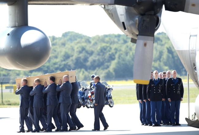 Dwa samoloty wojskowe - jeden holenderskie, drugi australijski - z 40 trumnami na pokładzie wylądowały na płycie lotniska w Eindhoven, gdzie były oczekiwane przez członków holenderskiej rodziny królewskiej, premiera Marka Rutte i setki krewnych ofiar.