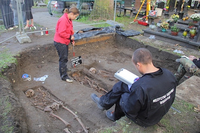 Jak informuje Andrzej Arseniuk, rzecznik prasowy IPN, w wyniku oględzin sądowo-lekarskich przeprowadzonych 13 i 15 września ustalono, że są to m.in. szczątki trzech mężczyzn i młodej kobiety. Ta ostatnia ma przestrzeloną czaszkę. Podobny ślad po kuli odnaleziono również w szczątkach mężczyzny, który został pochowany tuż obok kobiety.