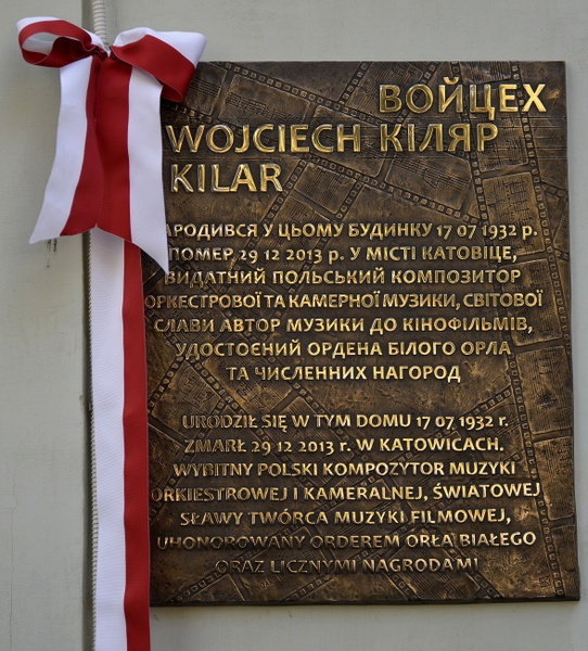 Tablicę poświęconą zmarłemu w ub. roku kompozytorowi Wojciechowi Kilarowi odsłonięto w niedzielę we Lwowie podczas trwającego 3. przeglądu najnowszych filmów polskich. Wykonana z brązu tablica zawisła na domu rodzinnym urodzonego we Lwowie Kilara.
