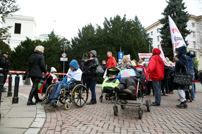Przed kancelarią premiera i przed Sejmem protestowali w czwartek rodzice niepełnosprawnych dzieci. Przypominali o swych postulatach z wiosny tego roku, gdy okupowali parlament. Chodzi im m.in. o dożywotnie świadczenie pielęgnacyjne i podwyższenie renty socjalnej.