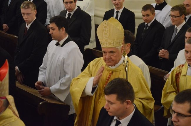 Przewodniczył on Mszy świętej, która rozpoczynała swoiste Triduum obchodów jubileuszowych. Homilię podczas Mszy św. wygłosił abp Stanisław Budzik. Przywołał on wspomnienia z dnia 23 października 1988, kiedy w kronice seminaryjnej zanotowano, że seminarium odwiedził kardynał Joseph Ratzinger. - Dzisiejsza uroczystość i gość przywołuje tamte wspomnienia. Obu gości łączy sprawowana funkcja w Kościele - Prefekt Kongregacji Nauki Wiary. Przy okazji odbioru paliusza, miałem okazję rozmawiać z Ojcem świętym Benedyktem XVI, zapytałem go wtedy czy pamięta tamtą wizytę w Lublinie. Odpowiedział, że wciąż ma przed oczyma wielką wspólnotę kleryków, która nie mogła się pomieścić na stołówce. Dziś jest nas mniej, ale radość jest tak samo wielka, jak wówczas gdy odwiedzał na kardynał Ratzinger - mówił abp Budzik. Nawiązał też do porannych wydarzeń jakim była promocja Opera Omnia Josepha Ratzingera, w których uczestniczył kard. Müller. - Z tej lektury czerpcie także mądrość w swoim kapłaństwie - zachęcał abp Stanisław. - Kościół potrzebuje kapłanów, których serca napełnia radość Ewangelii , alumnów, którzy spotkali Chrystusa, który ich wybawił od pustki, kleryków którzy udowadniają, że z Chrystusem odradza się radość i życie nawet na ziemi jałowej - mówił.