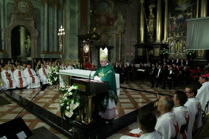 Nuncjusz apostolski abp Celestino Migliore w swojej homilii podziękował, że mógł wziąć udział w jubileuszu oraz zwrócił szczególną uwagę alumnów na konieczność traktowania niesienia dobra jako największego powołania - Wielkim problemem dzisiejszego czasu jest słowo, które nie znajduje posłuchu, nie wzbudza zainteresowania, pozostawia słuchaczy nieczułymi na przekazywane treści, a czasami wręcz wywołuje u nich niechęć - mówił.