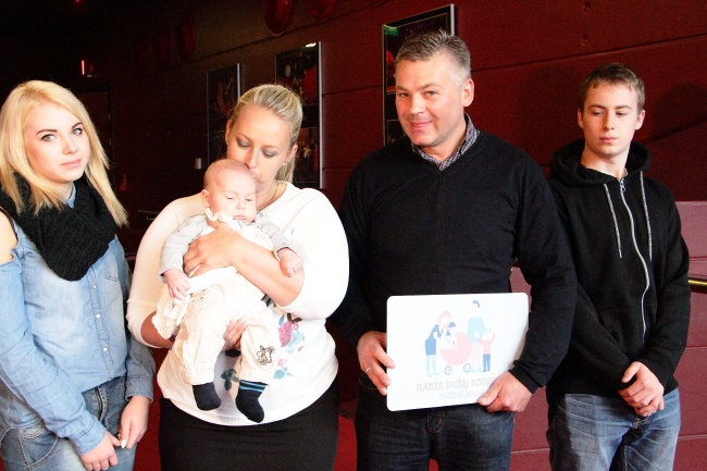 Tę nową rzeczywistość doceniają zwłaszcza ci, którzy zdecydowali się na założenie dużej rodziny. - Na to nigdy nie jest za późno! - przekonywał pan Adam Kostępski, jeden z przedstawicieli takich rodzin, odbierając z rąk ministra Ogólnopolską Kartę Dużej Rodziny. - Jestem szczęśliwym mężem Joanny i ojcem trojga dzieci: Patryka, Dominiki i 3-miesięcznego Huberta. Rodzina to dla największy skarb, a karta jest dla nas dużą ulgą finansową, zwłaszcza jeśli chodzi o bezpłatne przejazdy komunikacją miejską dla dzieci, zakupy książek, ubrań - mówił.