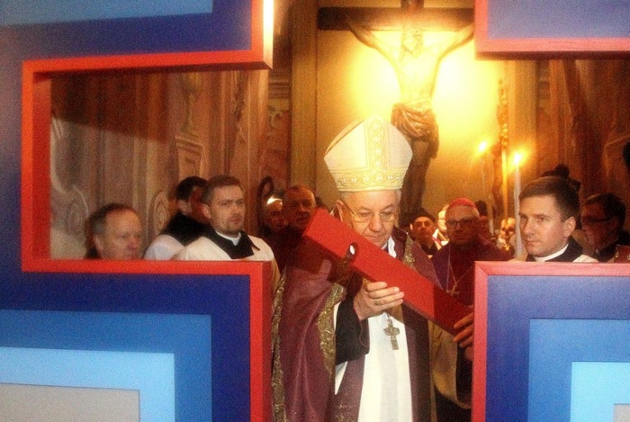 Arcybiskup Stanisław Budzik jako pierwszy przekroczył Bramę Miłosierdzia w archikatedrze, która specjalnie została na tę okazję zbudowana u wejścia do nawy prowadzącej do kaplicy Krzyża Trybunalskiego i Najświętszego Sakramentu. Brama ma kształt krzyża. - Symbolizuje ona drogę pojednania i przebaczenia - mówił w homilii abp Stanisław Budzik.