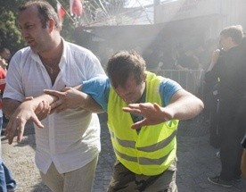 Wynajęci przez komornika ochroniarze po raz kolejny próbują sforsować jedno z wejść do stołecznej hali KDT. Zabarykadowani wewnątrz kupcy bronią się, używając m.in. gaśnic.