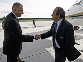 Michel Platini przyleciał do Wrocławia w niedzielę wieczorem. Wcześniej odwiedził Gdańsk i Poznań, gdzie przyglądał się m.in. postępom przy budowie stadionów na Euro-2012. W Gdańsku szef UEFA spotkał się również z Lechem Wałęsą.