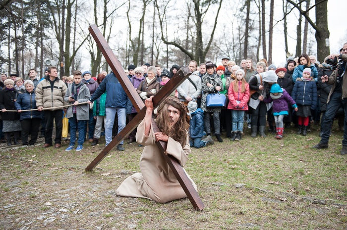 Krzyki fałszywie oskarżającego tłumu. Jęki Chrystusa, który był cały czas był wyśmiewany i opluwany przez żołnierzy dopingowanych przez faryzeuszy. Szyderczy śmiech Heroda. Świst biczów i krzyk biczowanego. Potem głuchy odgłos krzyża spadającego na ziemię i coraz cichszy jęk Jezusa. Na koniec tylko uderzenia młotków przybijających ręce i nogi. Jeszcze ostatni krzyk: "Wykonało się!" i cisza. Cisza, która po kilku godzinach męki jest nadzwyczaj wymowna.