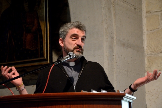 O 11.00 rozpoczęło się spotkanie w auli o. Augustyna Kordeckiego, na której z konferencją gości duszpasterz młodzieży z Włoch, z diecezji, z której około 1500 młodych przyjedzie na Opolszczyznę podczas Dni w Diecezjach. – Jesteście wezwani, by być przyszłością kontynentu europejskiego – mówił ks. Giordano Goccini, zachęcając, by nie modlić się tylko w intencji egzaminu, ale swojej przyszłości. Mówił o miłosierdziu, o patrzeniu na drugiego człowieka z miłosierdziem, a także o zbliżających się Światowych Dniach Młodzieży, których opolska młodzież też będzie gospodarzami.