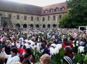 Od samego rana autokary przywoziły dzieci z całej okolicy aby mogły wziąć udział w przywitaniu „Małego Kwiatka”. Ustawione wzdłuż drogi prowadzącej do średniowiecznego opactwa, pozdrawiały relikwie niesione przez Rycerzy Świętego Kolumba. Przed wejściem św. Teresę powitała wspólnota karmelitów.