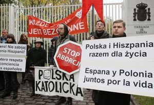 W listopadzie ma wejść w Hiszpanii prawo zezwalające na usuwanie ciąży na życzenie dziewczętom od 16. roku życia, i to bez zgody rodziców. Projekt ustawy legalizuje również zabicie w łonie matki dziecka w 14. tygodniu życia. By zaprotestować przeciwko wprowadzeniu tego prawa 40 hiszpańskich stowarzyszeń antyaborcyjnych zaplanowało na dziś wielki przemarsz ulicami Madrytu. Warszawską pikietę w geście solidarności z Hiszpanami zorganizowała Polska Federacja Ruchów Obrony Życia, skupiająca 130 organizacji prorodzinnych. Przed siedzibą ambasady zgromadziło się kilkadziesiąt osób. Trzymały one w rękach transparenty, na których po polsku i hiszpańsku widniały napisy: „Polska i Hiszpania razem dla życia”, „Każde życie jest bezcenne”, „Madryt Warszawa wspólna sprawa”, „Zapatero! Nie zabijaj sumienia Hiszpanii”.