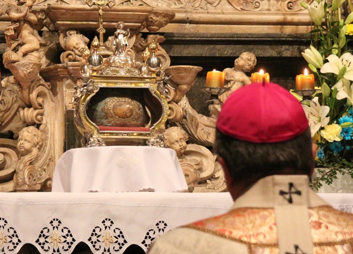 Metropolita przewodniczył tu Mszy św. wieńczącej triduum ku czci patrona Wrocławia. W homilii zaprosił zebranych do refleksji nad postaciami faryzeusza i celnika z niedzielnej Ewangelii. Ten pierwszy ukazany jest jako człowiek, który czuje, że jest w porządku, jest zadowolony z sobie i gardzi tymi, o których sądzi, że są gorsi od niego. Celnik natomiast to człowiek grzeszny, który swoją grzeszność uznaje i prosi Boga o miłosierdzie; wie, że może się zbawić jedynie dzięki Niemu, a nie poprzez własne zasługi.