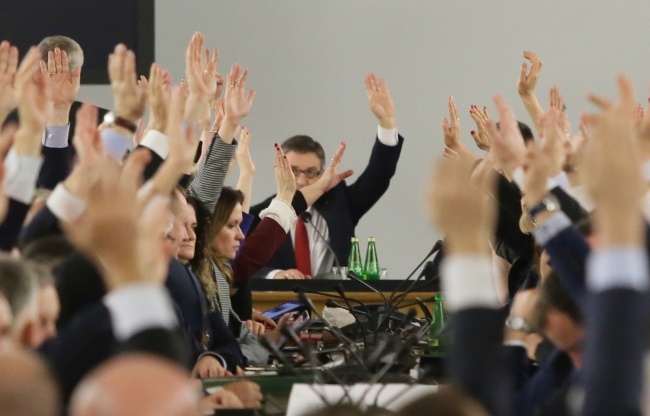 "Nie tylko według mnie, ale i według prawników sejmowych, wszystko jest zgodne z prawem, zgodnie z konstytucją" - mówił Suski. Według niego, głosy były liczone przez sekretarzy i zapisywane, sporządzane były protokoły z każdego głosowania.