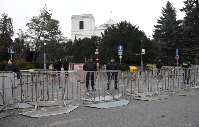 Nad ranem we wtorek przed wjazdem do Sejmu zostało zbudowane ogrodzenie, a protestujący tam ludzie przesunięci na drugą stronę ulicy Wiejskiej. Wjazd do Sejmu ochrania także grupa policjantów.
