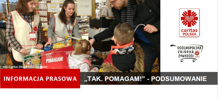 Caritas Polska składa serdeczne podziękowania wszystkim, którzy zaangażowali się w przeprowadzenie zbiórki. Już rozpoczęły się przygotowania do następnej, jubileuszowej, XV Ogólnopolskiej Zbiórki Żywności „TAK. Pomagam!”, która odbędzie się przed tegorocznymi świętami Bożego Narodzenia w dn. 7-8 grudnia.