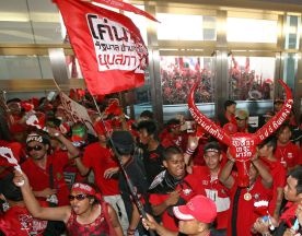 Zwani "czerwonymi koszulami" demonstranci - zwolennicy zdymisjonowanego premiera Thaksina Shinawatry - wdarli się w poniedziałek do budynku Komisji Wyborczej. Wycofali się stamtąd po tym, jak komisja zgodziła się wydać 20 kwietnia decyzję w śledztwie dotyczącym rządzącej Partii Demokratycznej.
