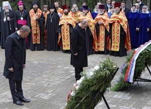 "Nowyje Izwiestija" wybijają z kolei, że "razem z polskim kolegą Donaldem Tuskiem ukłonił się przed murem, na którym widnieją nazwiska zabitych Polaków, i obiecał, że ocena stalinowskich represji nie będzie rewidowana".