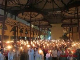 Tysiące wiernych w parafii Thai Ha zgromadziło się w sobotni wieczór z zapalonymi świecami, aby modlić się za Polskę i Kościół.