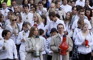 Marsz odbył się w milczeniu - oddano tym hołd ofiarom katastrofy lotniczej pod Smoleńskiem. Uczestnicy nieśli 96 świec upamiętniających wszystkie ofiary tej tragedii oraz nieśmiertelnik z nazwiskiem prezydenta Lecha Kaczyńskiego.