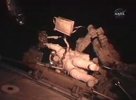 W trakcie pierwszego wyjścia w kosmos w poniedziałek astronauci z Atlantis zamontowali zapasową antenę do łączności ISS z Ziemią oraz zainstalowali nową platformę narzędziową na wysięgniku roboczym stacji.