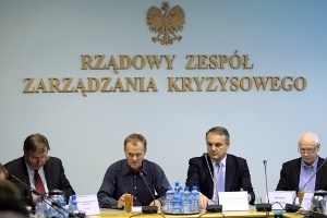 Zespół rządowy obradował w Krajowym Centrum Koordynacji Ratownictwa i Ochrony Ludności. W spotkaniu uczestniczyli również m.in. minister spraw wewnętrznych i administracji Jerzy Miller, szef MON Bogdan Klich, wicepremier Waldemar Pawlak i szef BBN Stanisław Koziej.