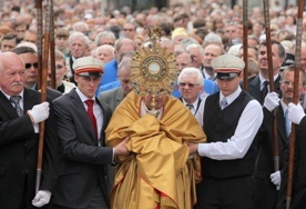 Nawiązując do procesji eucharystycznej, abp Nycz podkreślił, że wyjście z Chrystusem eucharystycznym "nie jest manifestacją siły Kościoła, ale jest przypomnieniem, że religia i Kościół mają prawo być obecne w przestrzeni publicznej". Dodał, że Kościół ma wiele do zaoferowania ludzkiej społeczności.