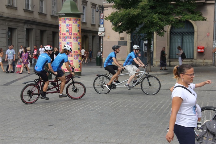 Trzech niewidomych rowerzystów wyruszyło z Rynku Głównego tandemami do grobu św. Jakuba. Przed nimi ponad 3,5 tys. km, które wraz z 11 widzącymi przewodnikami pokonają w ciągu 50 dni.